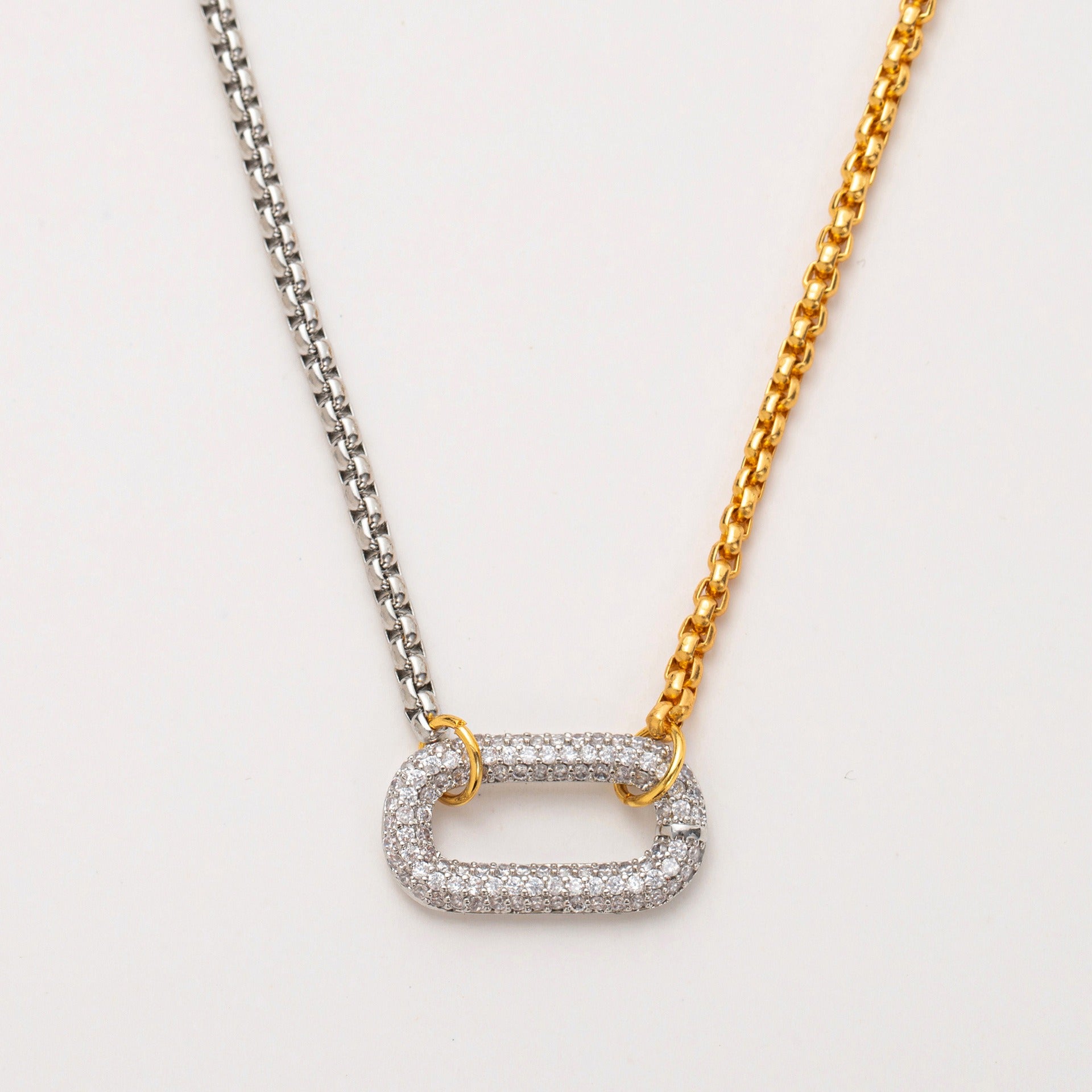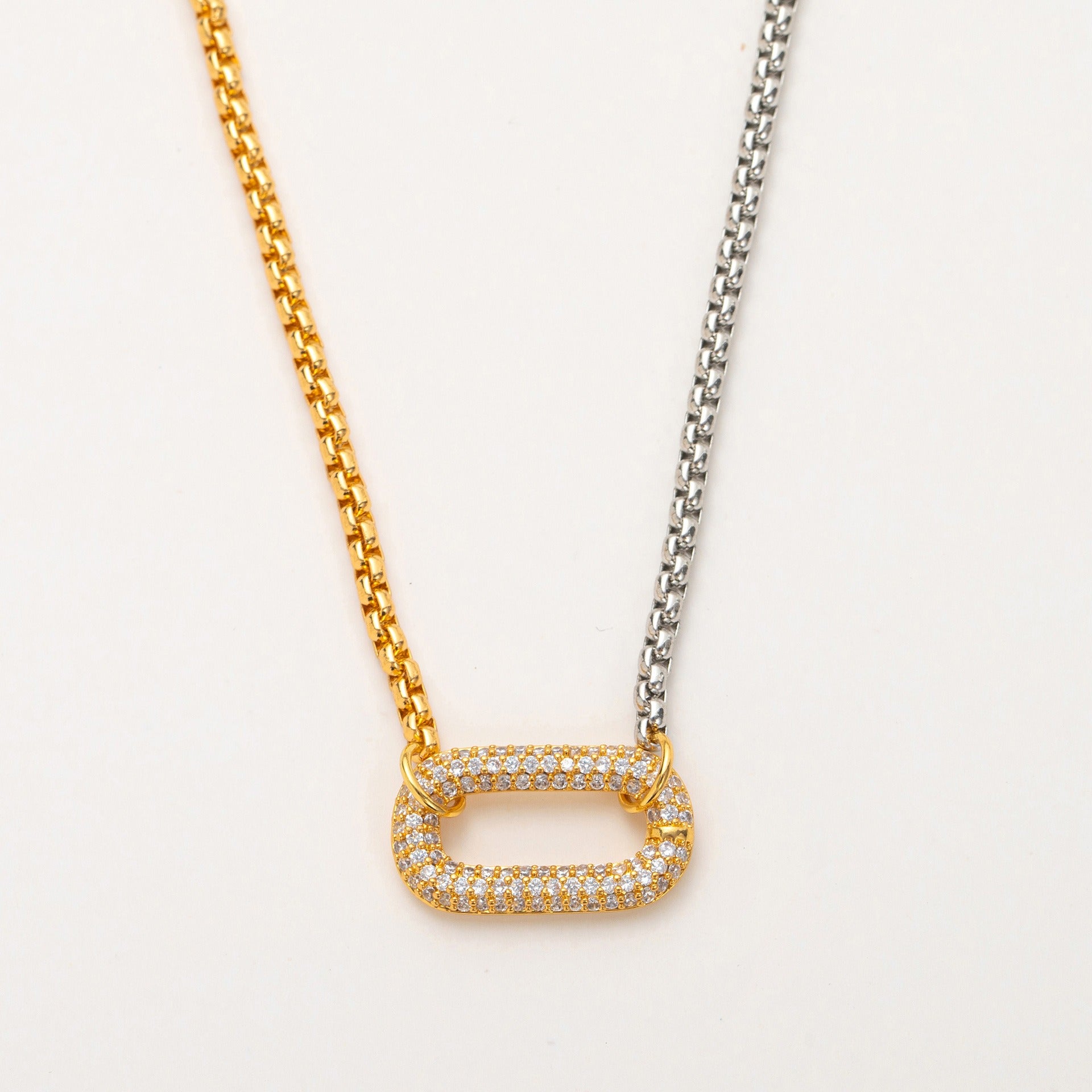 18k Gold Corn Chain U-Shaped Rhinestone Pendant Necklace