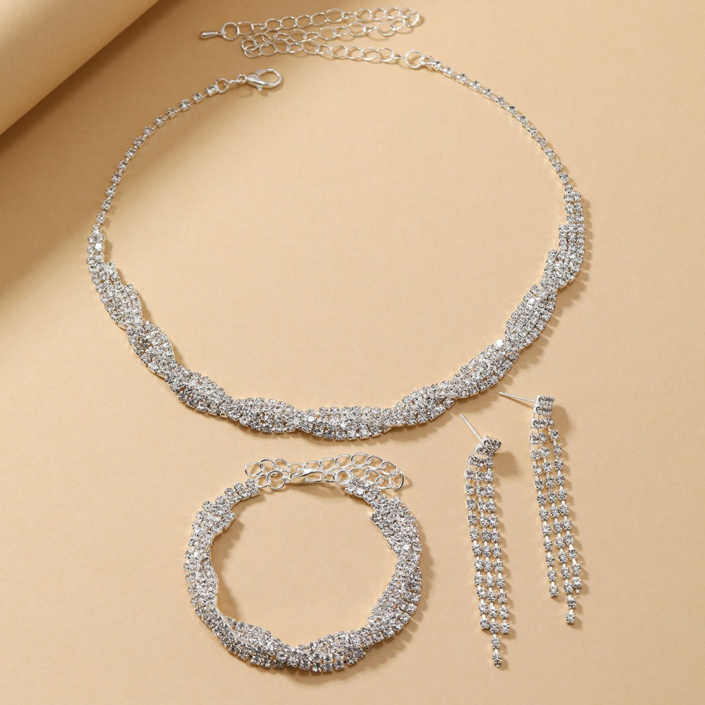 3PCS Temperament Claw Chain Rhinestone Twisted Shape Jewelry Set