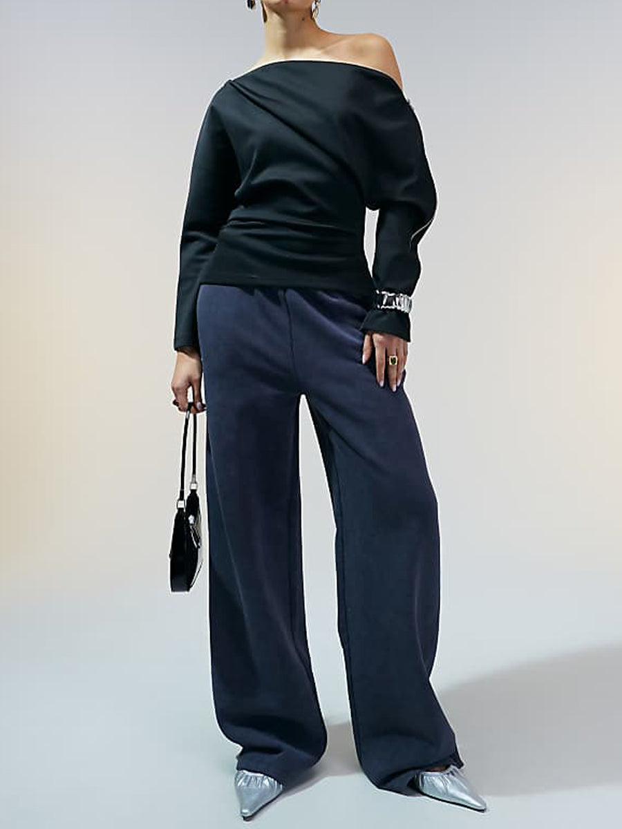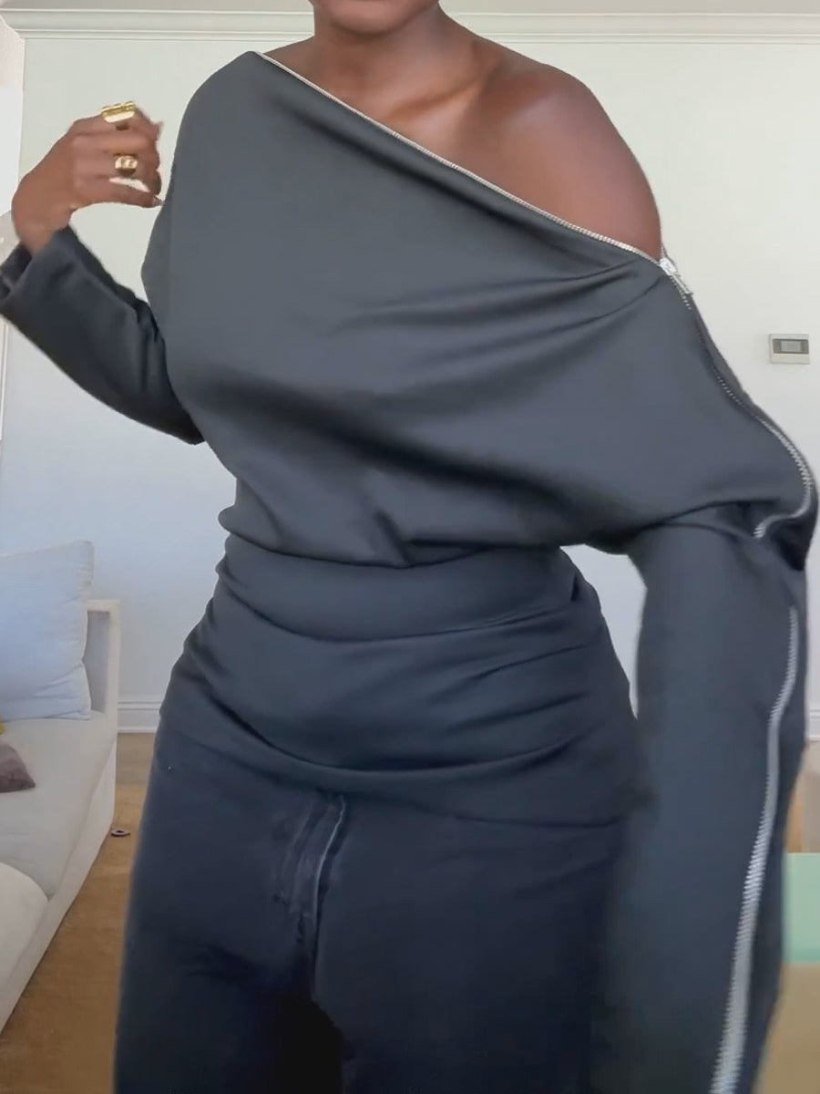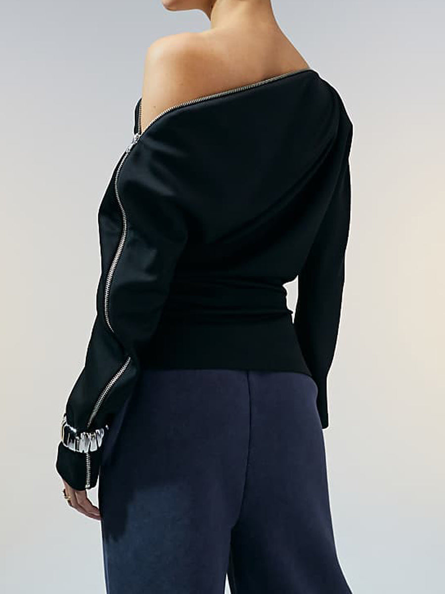 Fashion Off Shoulder Zip Top