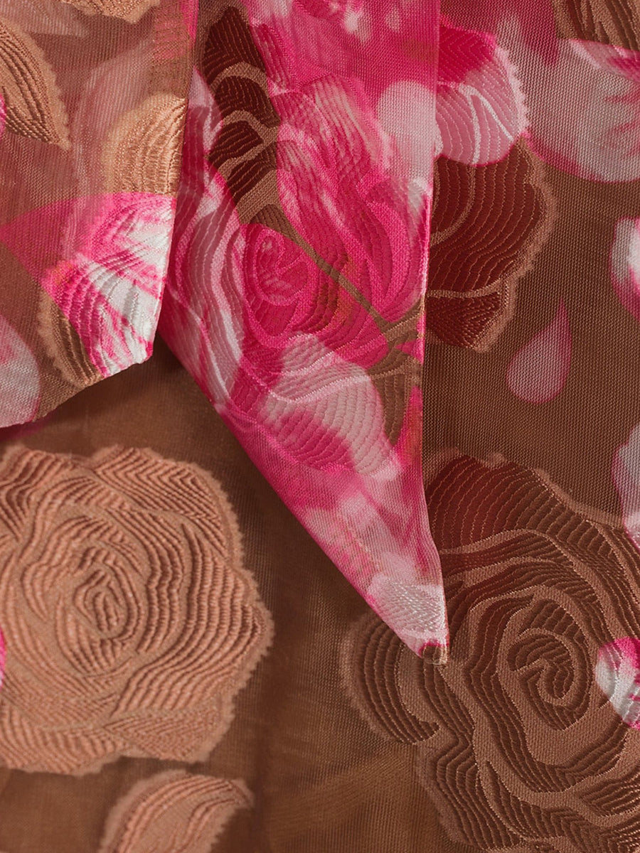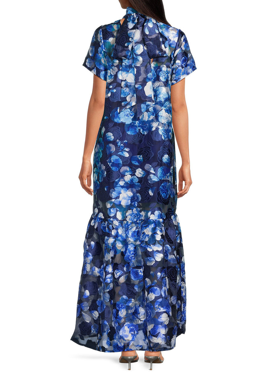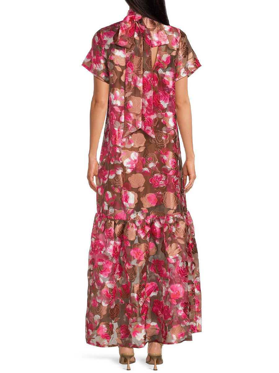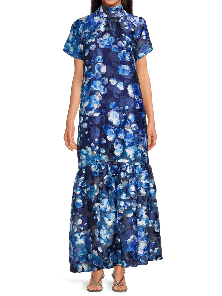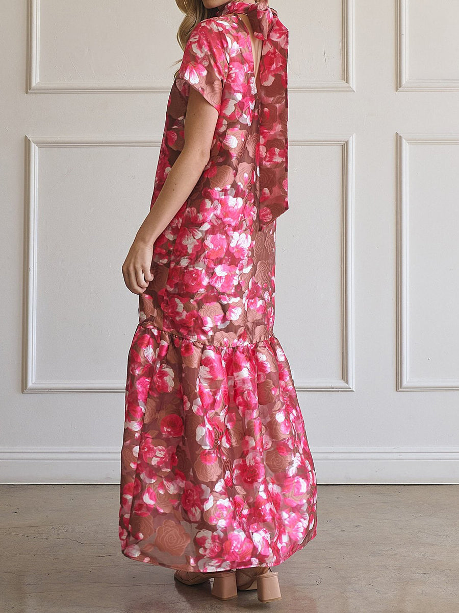 Floral Jacquard Mock Neck Tiered Hem Maxi Dress
