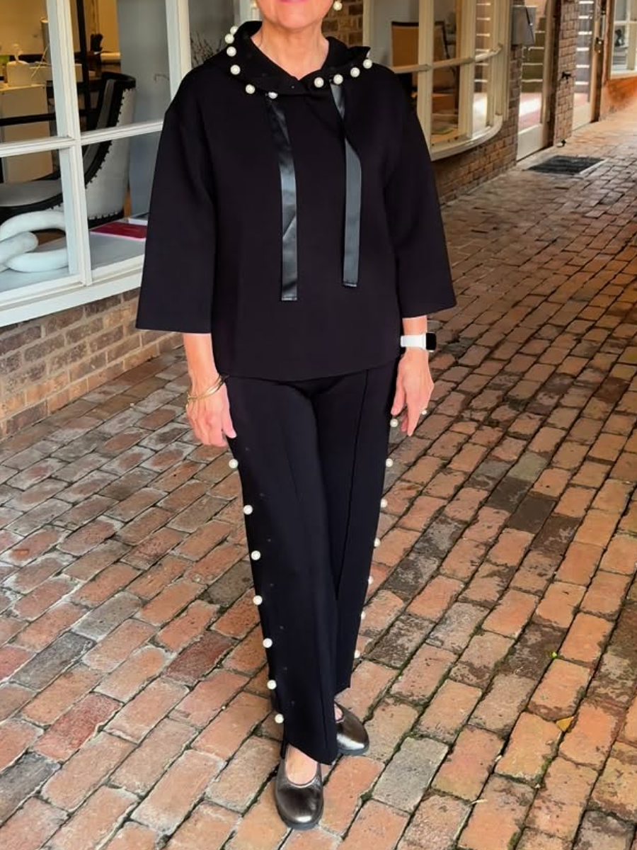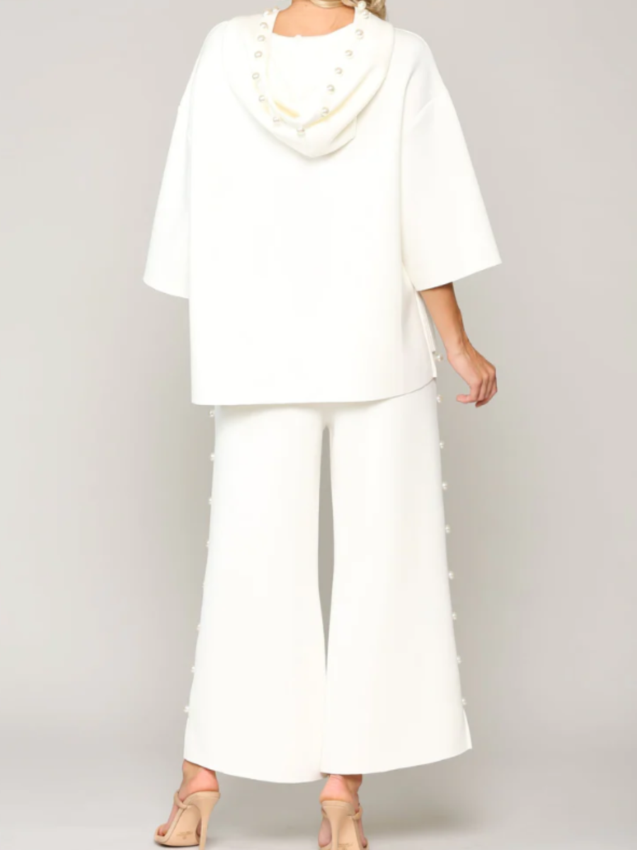 Hooded Pearl-Embellished Pants Suit