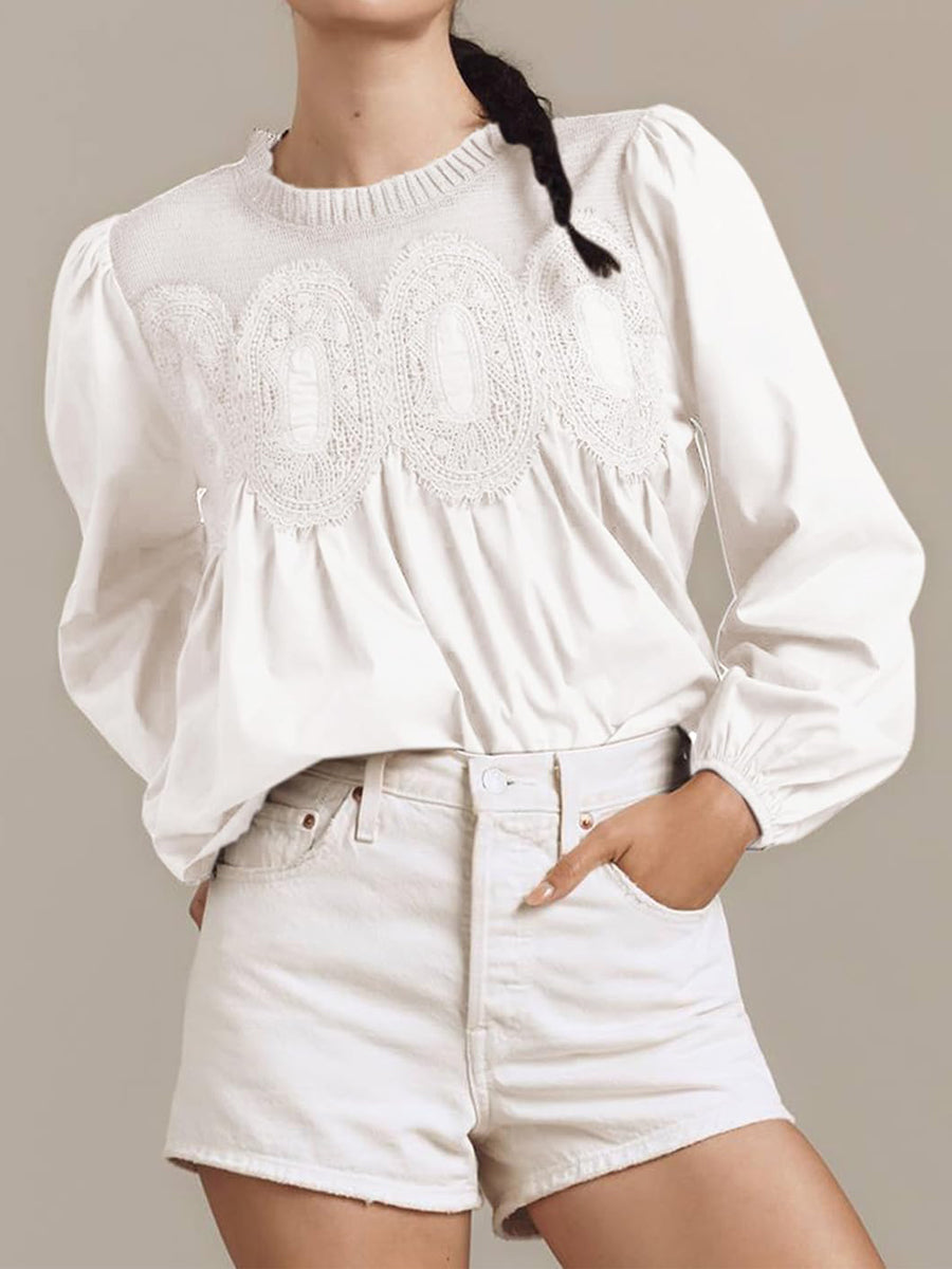 Lace Patchwork Long Sleeve Blouse
