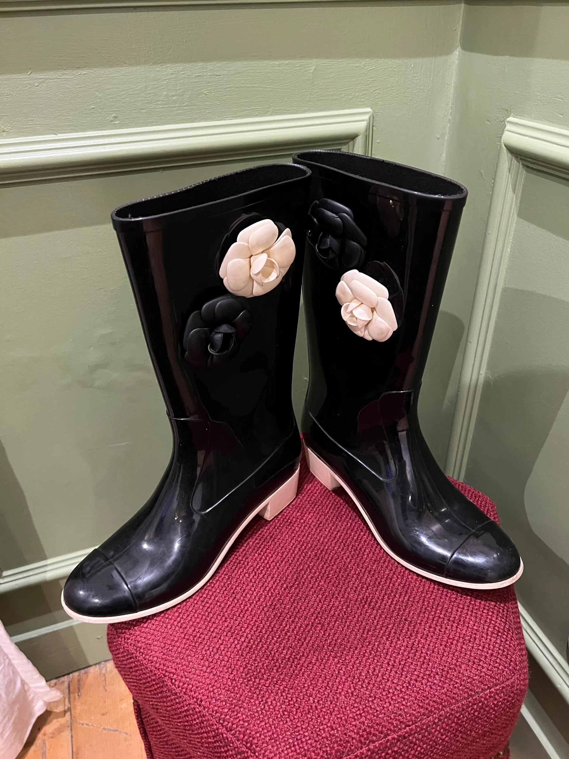 Rubber Camellia Flower Rain Boots