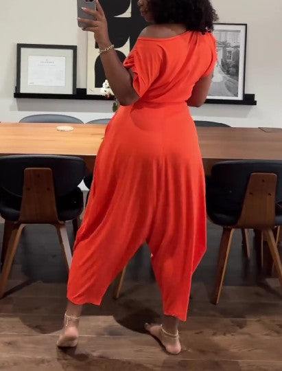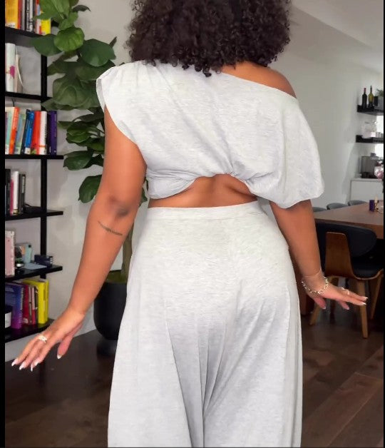 Women's Casual Solid Color Asymmetrical Neckline Loose 2pcs Set