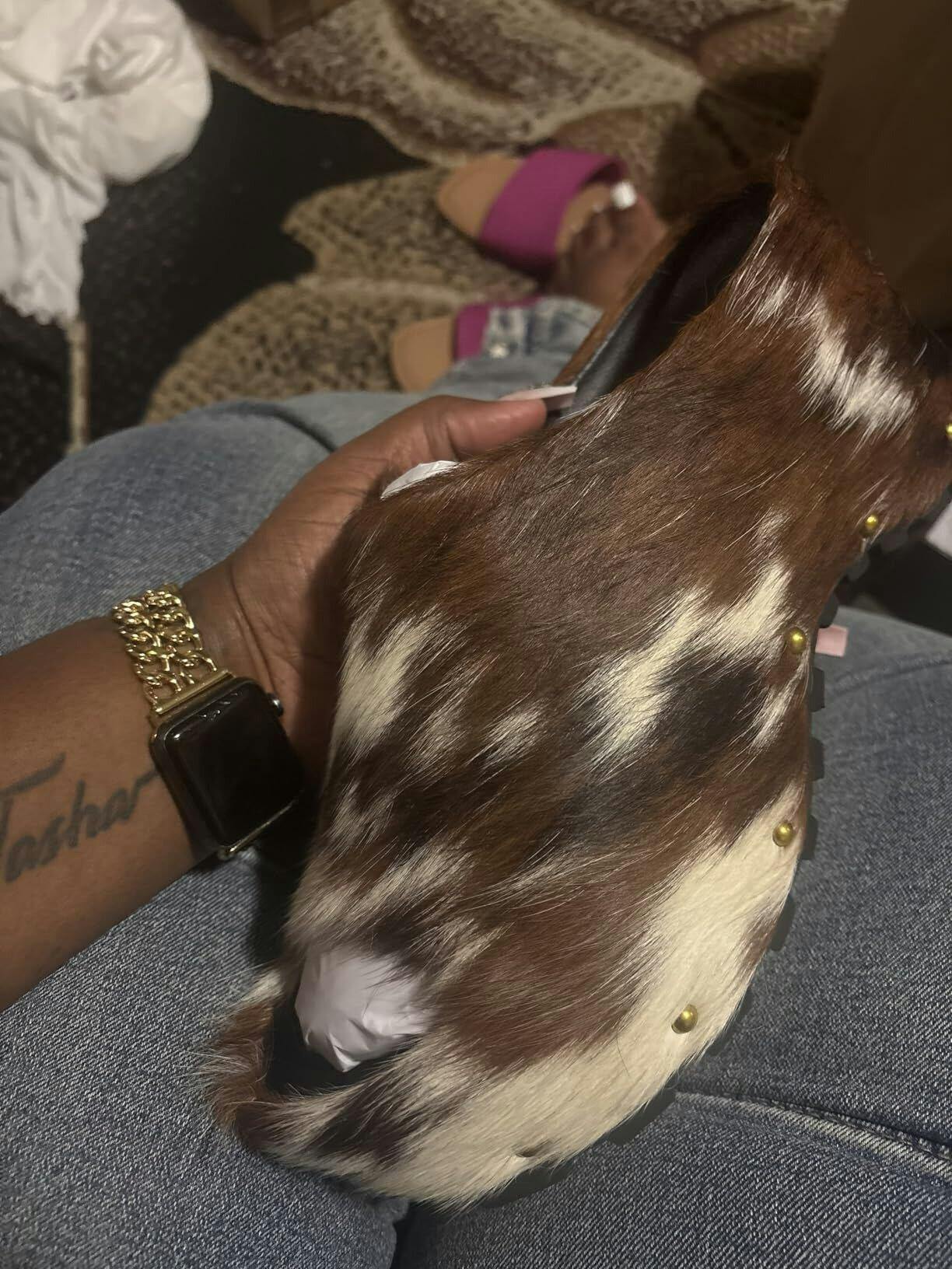 Women's Thick Long Hair Calfskin Clogs